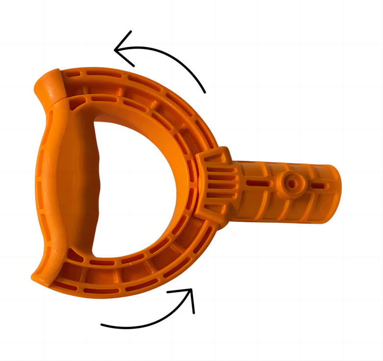 Īpaši izstrādāta forma, kas dabīgi pieguļ plaukstai un samazina slodzi uz muguras muskuļiem. Smagu priekšmetu pārvietošana kļūst par ērtu un drošu ikdienas darbību bez pārslodzes.